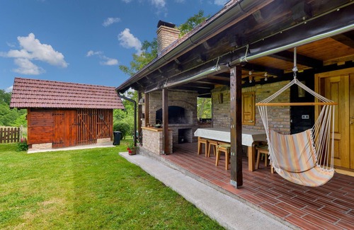 This small wooden house is located in a village near the town of Sisak. The speciality of this accommodation is its proximity to the river Kupa, where you can go boating, fishing or swimming in summer. The large, spacious courtyard and the covered terrace invite you to barbecue, sunbathe or relax. The house is ideal for a break from the hustle and bustle of the city. A 20-minute drive away is the town of Sisak, where you can visit the old town or the town museum. In the immediate vicinity is also igo, a kind of village with traditional houses and the opportunity to get to know the local cuisine. We also recommend a visit to Lonjsko Polje.