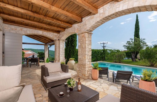 In the green heart of Istria, this beautiful vacation home in traditional stone house style welcomes you.