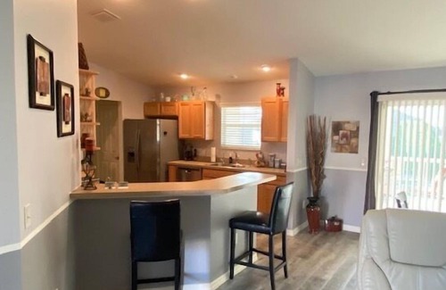 Details are in the Agreement sent after booking. Fabulous location, corner lot, plenty of room to enjoy your home away from home. Three bedroom, two bath home. Luxury vinyl flooring throughout the main living areas with carpet in the bedrooms. Front guest room has a trundle bed ( 2 twin beds in trundle) and desk area for office. Second guest room has queen size bed. The guest bathroom has a tub/shower combo. Master bedroom has a king size bed and flat screen TV. The master bath has a walk in shower and dual vanities. Large walk in master closet.