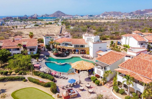 Enjoy quiet Cabo living with this luxury home away from home! Unplug from daily life and enjoy the sunset from your private terrace or patio. You can use the spacious kitchen for a night in or have our front desk call a cab to take you into town (just 5 minutes away) for dinner and many activities! Enjoy our 9-hole executive golf course and relax by the pool next to our swim up bar!
