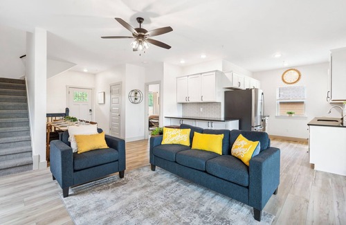 Our accommodations includes 2 separate living spaces, 4 Private Bedrooms, a Bunkbed Loft, 4 Bathrooms, Deck & Patio, Kitchen, Dining Room, Private Hot Tub, and More!