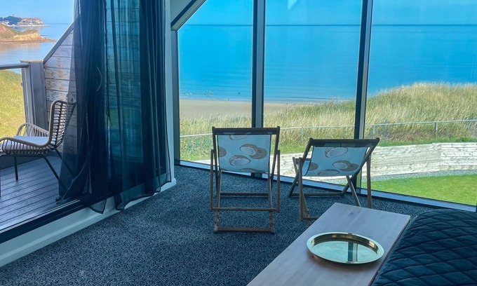 Up the winding staircase we have 2 large bedrooms each with kingsize beds and balconies with breathtaking sea views. The master bedroom has floor to ceiling Windows with the most amazing view of the bay and north sea. Looking for that perfect morning coffee spot? Then it has to be the master balcony with its view of sprawling cliff tops, sea views and castle ruins. There truly isn’t much better views to wake up to. The second bedroom has a just as spectacular view from the balcony but with the added benefit of en-suit bathroom.