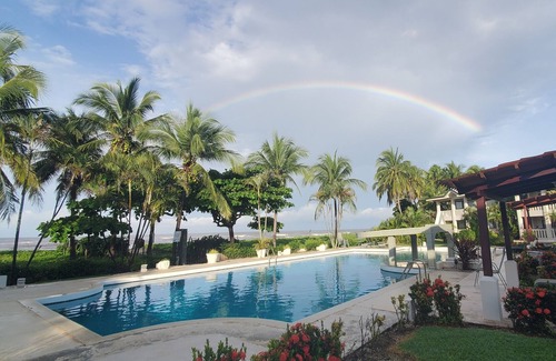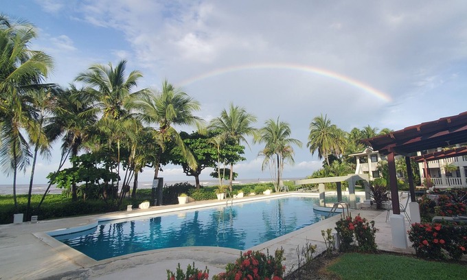 Stunning tropical beachfront Condo in Playa Junquillal, Costa Rica. Experience the beauty of the Pacific Ocean just steps from your door. Spacious, modern and comfortable accommodations. Upgraded kitchen with beautiful ocean views. Location is clean, safe, and GORGEOUS. We look forward to sharing our Costa Rica home with you!