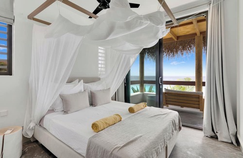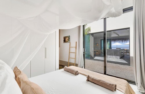 Villa Tjitjak has 5 double bedrooms and 5 bathrooms. All bedrooms are equipped with air conditioning and a fan. There are two bedrooms on the ground floor, and the other three are upstairs, offering ultimate privacy and beautiful views of the ocean and garden.