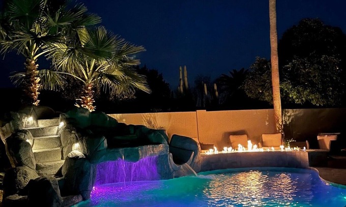 Amazing pool, huge hot tub, and resort-like backyard is located in South Scottsdale. Amazing pool, huge hot tub, and resort-like backyard provides accommodation, featuring Air Conditioner, Pool, TV, among other amenities. This House features Air Conditioner, Pool, TV, to make your stay a comfortable one.