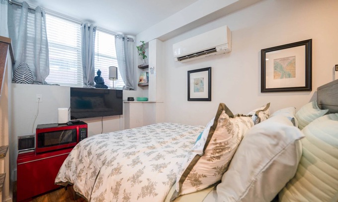 Step into this beautiful studio with a direct private entrance, ground floor, good light, above ground, small but has all you need for a truly comfortable stay. The studio can comfortably host a couple featuring a queen-size bed, a full bathroom with a shower, a 42" TV, strong wifi, Central Heat, and AC. Kitchenette, no living room. We do not allow pets. Unbeatable Location in the heart of Little Italy. Just a minute's walk to Faneuil Hall, Quincy Market, Freedom Trail, the Aquarium, many restaurants, and shops. One block from Hanover St., Starbucks, and the waterfront, near Paul Revere's House. Little Italy is a safe, friendly, family neighborhood with many moms and pop shops. It's an easy walk to many tourist sites and a short walk to public transportation, including the "T" station at Haymarket.