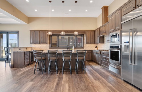 After your days enjoying the local activities and scenery, coming home to your very own luxury home is sure to build excitement. There's so much space to spread out with over 3,700 sq. ft. floor plans spread over 2 levels, with a huge wrap-around deck great for enjoying the Black Hills view or enjoying a night under the starry skies! The entire property has been crafted to emphasize the great view from the open kitchen/living room, main level master bedroom and the lower-level living and bedroom. The wrap-around kitchen is well stocked and complete with high-end appliances and a large island great for enjoying your company while preparing a meal. Behind the kitchen is a large pantry, perfect for storing all of your additional food and drinks while keeping the kitchen area for living and entertaining. The living area seamlessly flows with the open kitchen and includes a rock fireplace, and large flat-screen TV. The master bedroom is on the main level just off the kitchen/living room that includes its own walk out onto the large deck and its own luxury bathroom! It includes a large shower, double vanity and a whirlpool tub! There's a 2-car garage on the main level as well! The lower level includes a cozy living area with a TV, and a walk out on the oversized patio with a great view also! A stay at the Paramount duplexes are sure to make for a Black Hills experience that you won't soon forget. We welcome you on your next Black Hills adventure!