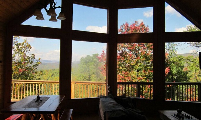 This rustic retreat, with breath taking views, is nestled in the Blue Ridge Mountains, in Wilkes County, North Carolina on a private mountain. The chalet style cabin is tucked away high up in a gated community,just 20 minutes from Boone, and is the perfect place to relax as well as enjoy local attractions.