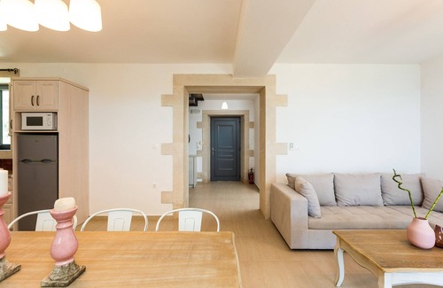 Villa Stone Thromila is a 200 sq. m. residence situated in the southern coastal area of Souda in Rethymno prefecture. The villa is located only 2 km away from the organised sandy beach of Souda and 1.2 km away from the unorganised Fotinari Beach.