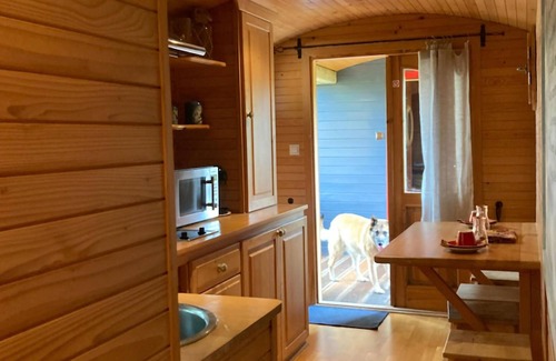 Wild Atlantic coast, picturesque harbor towns and an ambience of high quality of life: in this environment lies a characterful ensemble in which you move into a caravan converted into a Tiny House in a quiet location. The interior is extremely cozy thanks to a lot of wood in a warm look. Take advantage of the garden, or the communal indoor pool.