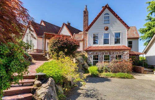 Step into the timeless charm of this 1938 Tudor-style home, where relaxation awaits around every corner. You'll find a welcoming outdoor dining area, two spacious living rooms, a selection of board games for entertainment, a fully equipped kitchen, five lovely bedrooms, and three and a half tastefully designed bathrooms. There's plenty of space for your group or family to spread out and enjoy the stunning views of Puget Sound, Vashon Island, and the surrounding mountains.
