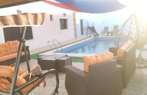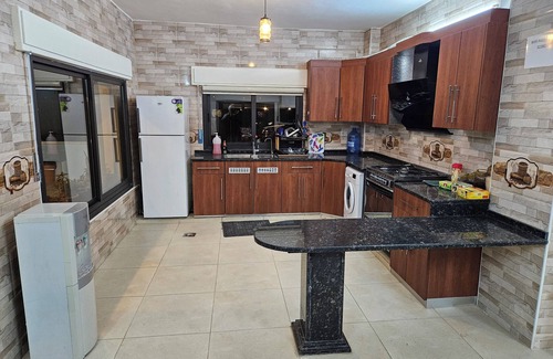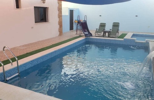 Beautiful get away vocation home that has everything you need to enjoy your family time. Swimming Pool, BBQ area, Kids play ground, DJ, Free Wifi,100% privacy, full kitchen and amazing view of the Yarmouk river and Wehda Damn. Only 20 minutes north of downtown Irbid at the Yarmouk Vally between Jordan, Syria and Palastin.