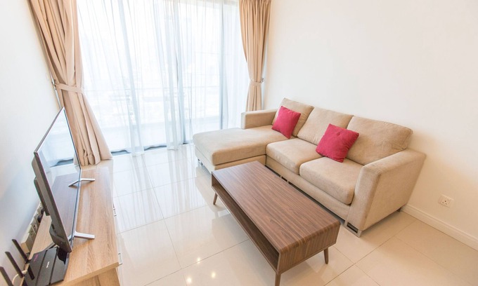 Stylish apartment with 2 bedrooms, 2 bathrooms, kitchen, living room and balcony. There is a queen bed in master bedroom with its own bathroom and double bed in second bedroom. Living room has a comfy sofa, a flat screen TV and balcony with cute coffee table. The whole space is 90 square meters can accommodate up to 4 people. Kitchen is equipped with fridge, basic cooking facilities, electric kettle, dinning set and dinning table, so you can cook yourself a nice dinner and enjoy gathering with friends or family. There are also washing machine and dryer at your convenience.