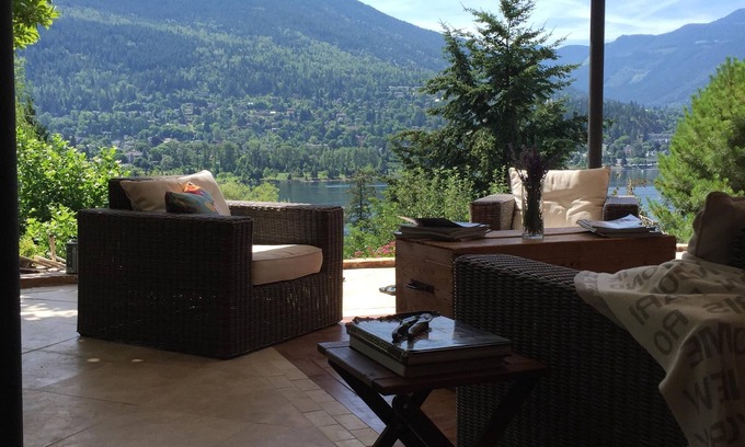 Come and be wowed from the minute you enter this beautiful home overlooking Nelson & Kootenay lake ! Recently restored to reflect our french heritage, this contemporary 1500 sq ft apartment boasts a small open plan kitchen, dining, comfortable TV room, living area with large windows to enjoy the view. Dine outside on the beautiful terrasse & watch the sailboats go by. Walk down to the sandy beach or drive to town just 5 minutes away.