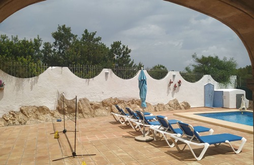 Situated in an elevated, quiet residential area, this large detatched Villa offers a Ground Floor 3 bed apartment with its own 8x4 pool for sole use of apartment (Owners have own pool on upper terrace), offers panoramic views to the sea and mountains. Only a short drive into Moraira where many restaurants, bars and the lovely beaches can be enjoyed. Ideal for 4 adults and 2 children. With Wifi and UK Freeview TV.