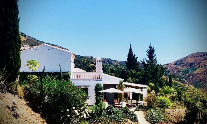 Nestled in the mountains, just a 15-minute walk from the pretty whitewashed village of Canillas de Aceituno, Villa Amores has spectacular panoramic views over the Sierra de Tejeda to the blue Mediterranean in the distance.