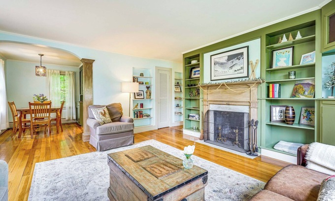 Escape to this Manchester Center vacation rental, which features a lush estate with modern comforts and natural beauty within walking distance of the town center. This 2-bed, 1-bath apartment delivers an immersive hideaway for small families or groups. Sip coffee on the deck, read or watch a movie by the fireplace, and unwind by the fishing pond. When adventure calls, hike the Green Mountain trails or watch thrilling equestrian events at the Manchester Horse Show!