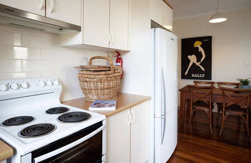 The simply styled lime stone barn includes hand chosen vintage and eclectic pieces along with beautiful quality linen to ensure your stay is truly relaxing. Twinkling chandeliers, views down to the lagoon, walks, caves and the sounds of the bushland echo behind the music you choose to sound your stay. Wake up rejuvenated and cook your own breakfast hamper, of local produce and supplements from our organic vegetable garden at the farmhouse. In the cooler months, enjoy your locally sourced wine in front of a cosy fire.