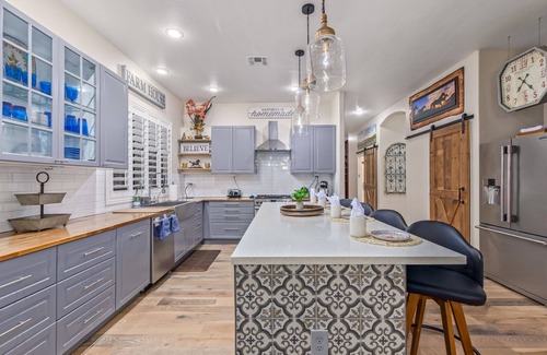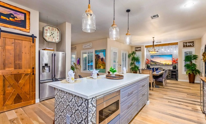 Welcome to your Americana Dream Vacation Home, the ultimate 4-bedroom, 3-bath getaway in sunny Chandler! The outdoor paradise features a heated pool, spa, putting green, BBQ, firepit, and lawn games—perfect for relaxation and fun. Inside, unwind on the plush reclining sectional or explore downtown Chandler's shopping, dining, and MLB spring training.