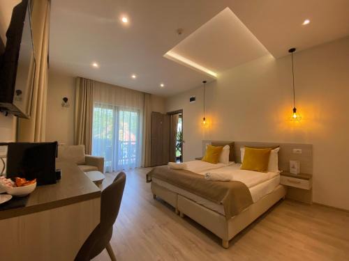 Amethyst offers accommodations in Sovata, a 5-minute walk from Ursu Lake. Featuring lake and garden views, this bed and breakfast also features free Wifi. The bed and breakfast has private entrance. Featuring a terrace, the units offer air conditioning and have a flat-screen TV and a private bathroom with walk-in shower and slippers. Rooms are equipped with a coffee machine, while certain rooms also offer a fully equipped kitchen with a microwave, a toaster, and a fridge. At the bed and breakfast, units are equipped with bed linen and towels. Guests at the bed and breakfast will be able to enjoy activities in and around Sovata, like skiing. Târgu Mureș Transylvania Airport is 44 miles from the property.
