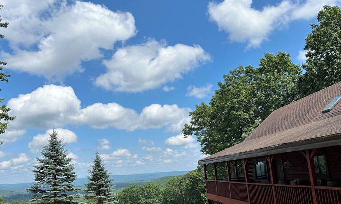 Amish-Made Log Home- 50 Mile View, Hot Tub, Fire-pit, 4 Mi to Gorge! is located in Hickory Hills. Amish-Made Log Home- 50 Mile View, Hot Tub, Fire-pit, 4 Mi to Gorge! provides accommodation, featuring Wheelchair Accessible, Balcony/Terrace, Bedding/Linens, among other amenities. This House features Wheelchair Accessible, Balcony/Terrace, Bedding/Linens, to make your stay a comfortable one.