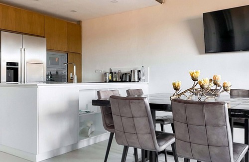 • A fully equipped kitchen with a 4-burner cooker and oven, large fridge, dishwasher, coffee machine and ice maker.