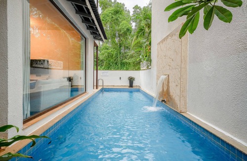 Straight from the living room step into your own private, cosy swimming pool fringed with tropical plants, perfect for an early morning dip or a lazy afternoon float, surrounded by nothing but nature and calm.