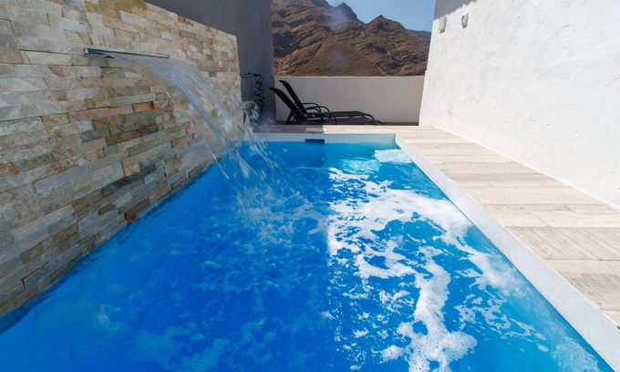 A special highlight is the heated pool, where you can relax after a hike through the mountains. Or make yourself comfortable on the sun loungers and enjoy the magnificent view of the sea and the mountain slopes of the Tamadaba Nature Park from here.
