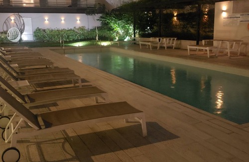 Yes, this Villa Crespo apartment has a swimming pool. Check the Facility Overview section for details about the pool and other available facilities.