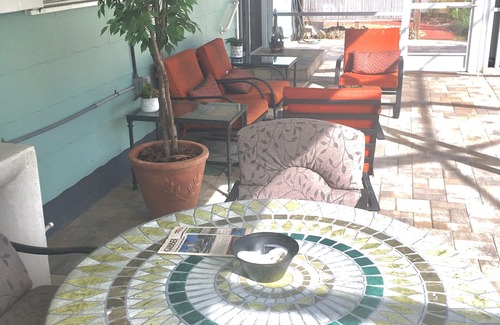 The space: We look forward to hosting you and your 25lb or under furry dog friend to enjoy our two bedroom, one bath, updated home with modern fixtures and appliances. Each bedroom has a queen bed allowing the home to perfectly host two couples but small enough to feel cozy as a single. The living room is a space designed for lounging and conversation as is the additional room which is a dining space and conversation area. There is a television with a fire stick streaming in the living room and large bedroom. The bathroom is shower only, easy to step in and out without issue. There is a shower handle bar for those who feel they need the security. Experience outdoor living in the screened in patio-pool area; the perfect place to enjoy morning coffee, lunch or a nightcap in a well-manicured, landscaped yard offering mature tropical trees surrounded by a privacy fence.