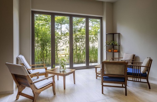 Ana Mandara Cam Ranh offers 174 air-conditioned accommodations, which are accessible via exterior corridors and feature minibars and safes. Rooms open to balconies or patios. Accommodations offer separate sitting areas. 43-inch flat-screen televisions come with cable channels. Bathrooms include separate bathtubs and showers with rainfall showerheads, bathrobes, slippers, and bidets.