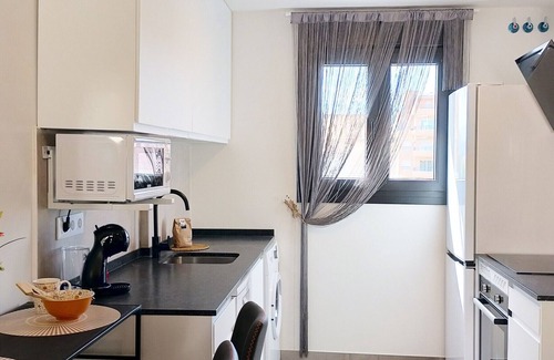 The apartment offers stunning mountain views, adding a special charm to your stay. Within walking distance, you'll find convenient options such as the supermarket “EL MOLINO” (50 m), restaurants like “LA DUNA GASTROBAR” (100 m) and “LA SOTA” (150 m). The sandy beach "AIGUABLANCA" is just 190 m away—perfect for relaxing by the sea.