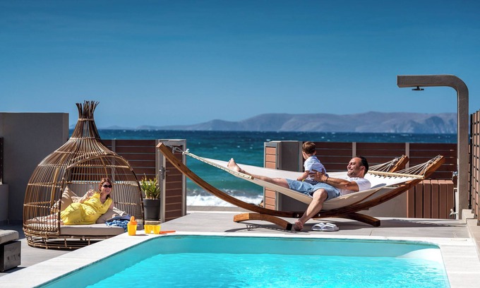 Experience the height of luxury at Villa Anasa, a stunning seafront villa offering 3 elegant en suite bedrooms & a private pool (heated upon request with extra cost). Located by the Cretan Sea, the villa boasts breathtaking sea views & is perfect for families & groups of friends. With space for up to 6 adults plus babies in baby cots,it provides comfort & relaxation. Villa Anasa is one of the twin villas in the Anasa Luxury Villas Collection, situated next to each other.
