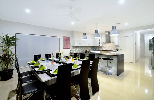 Set up to cater for 20+ Guests. Enjoy cooking a family feast while taking in the stunning views directly out to the waterfront and pool keeping kids in full sight