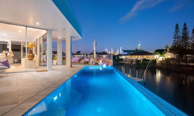 Anchored on an exclusive point position, this extraordinary estate shimmers as a jewel in the Main River crown. Presiding over a supersized 1,138m2 block with 63m waterfrontage and spectacular 270-degree skyline, hinterland and waterway views, this is one of Sorrento's finest waterfront estates. Boasting an unsurpassed location, outlook, and aspect, and unrivalled in finishes, design, and entertaining amenities, your best life begins here. Greet each day in the sophisticated master suite (one of five bedrooms) soaking up water vistas before savouring breakfast on the terrace, overlooking the gas-heated infinity-edge pool. As evening descends, draw up a seat by the alfresco bar or fire pit as the city lights up the night sky, or peel back the bifold and stacker sliding doors to create a seamless indoor-outdoor flow - perfect when hosting large-scale celebrations. A glamorous kitchen with a bespoke island bench and butler's pantry that steals the spotlight indoors, complemented by an expansive living and dining zone with full-height glazing that frames the magnificent views. The house also has a lift installed to travel between levels while Google Smart Home wiring and lighting transforms the home to match your mood or event. A three hole putting green will improve your short game and you can even enjoy a cinema under the stars with a retractable projector and screen. Boating enthusiasts are well catered for too, with a rare boat shed with ramp, plus a jetty and pontoon.