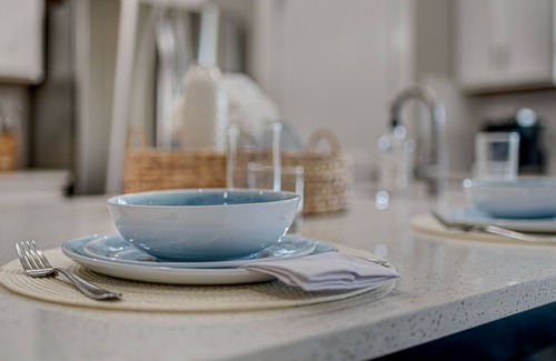 When you step inside, you’ll find a modern, open floor plan with a gourmet kitchen fully stocked for the pickiest of chefs. You can enjoy meals at the dining table with beautiful dinnerware. The living room is full of comfortable seating and a flat-screen TV. With the open living spaces, you’re never far from your loved ones! You’ll also find an additional sitting room complete with a wet bar for some evening cocktails! Slip outside with that cocktail and enjoy each other’s company on the balcony, where you’ll feel cool ocean breezes and view stunning sunsets.