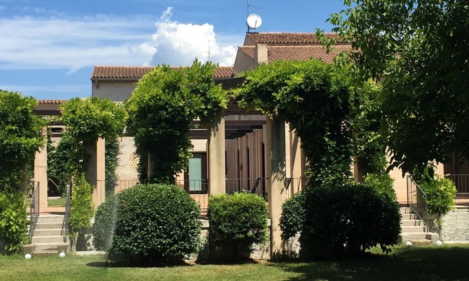 Villa built in the last century and recently renovated, the work of the famous architect Tommasi Giuseppe, particular signs are marble and wood, parquet and Venetian beaten. Although it is located in the context of the town of Sandra, a hamlet of Castelnuovo del Garda, as soon as you enter, you are enveloped by the atmosphere of spacious, rich environments muffled by an almost unreal silence. The guard that surrounds the house creates a filter from external environments. You can easily reach all the attractions of Lake Garda with its amusement parks and the typical towns on the shores of the lake. In addition, the historic center of Verona is only 20 minutes away by road.
