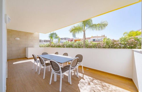 Apt da Paz/ Apt of PeaceIndulge in eco-friendly luxury at our ground-floor apartment in Vila Ancora, nestled in a serene residential neighbourhood, near Praia de Ana. Experience the comfort of solar/heated water, blending sustainability with modern living. Your holiday escape is stylish and environmentally conscious, providing a guilt/free retreat. This home-from-home is a bright airy space, boasting a large open plan kitchen, dining area, and living area. Double patio doors open onto a large terrace, complete with a BBQ and a separate outdoor dining area able to seat 8. Inside, the modern kitchen is fully stocked and fitted with appliances, including oven, microwave, hob, fridge, freezer and dishwasher.The 3 bedrooms are furnished beautifully with style and comfort in mind. The large master bedroom offers built-in wardrobes and boasts a modern ensuite bathroom. Both of the final two bedrooms, have built in wardrobes. One bedroom features a double bed with its own en-suite and the other has twin beds (which can reconfigured into one with access to the large family bathroom. All 3 bedrooms provide direct access to a covered terrace and a private garden.In your private garden, bask in sun-kissed luxury on sun loungers that offer relaxation and leisure.Surrounded by vibrant flora, unwind in style and soak up the warmth while nestled in your own outdoor haven. Or, take advantage of the shade while indulging in iced drinks in a separate conversation area.Welcome to a harmonious blend of productivity and serenity and elevate your work-from-home experience, featuring a dedicated office space with a view that opens up to a lush garden. Immerse yourself in a productive environment surrounded by nature's tranquillity allowing you to focus while enjoying the calming greenery just outside your window. This seamless integration of workspace and natural beauty ensures that your remote workdays are both efficient and rejuvenating.This apartment is fully air-conditioned throughout making it comfortable for the hot summer nights and days, and it also benefits from underfloor heating making it perfect for holidays all round the year.Embrace coastal living with unparalleled access to four pristine beaches, all within 1500m of your holiday rental. Stroll along our newly-developed boardwalk, gracefully tracing the stunning cliffs that guard the Atlantic Ocean. This thoughtfully designed boardwalk pathway, not only offers breath-taking panoramic views of the bay.Your stress-free getaway awaits, allowing you to immerse yourself in the local culture without hassle of navigating traffic or searching for parking. Enjoy the opportunity to explore the bustling historic old town of Lagos (only 15 minutes away), where you can enjoy local shops,Ideal for quiet, relaxing holidays, our complex provides a peaceful atmosphere perfect for unwinding and escaping the hustle and bustle. Please note that the property is not suitable for parties or night owls, as we prioritize a calm and restful environment for all our guests.