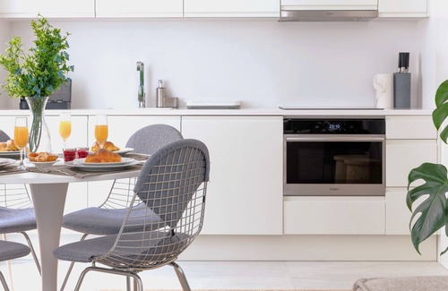 The perfect place to relax and unwind - complete with a comfy sofa and seating, stylish furnishings and locally produced artworks. Discover our playlists to set the mood as you relax in a calm atmosphere with adjustable and dimmable lighting. The dining table, seating up to four, is perfect for enjoying a meal together before setting out and discovering all the delights of Lisbon. Stay connected with complimentary high-speed fibre optic WiFi.