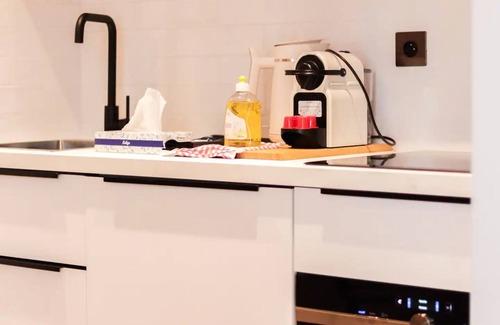Charming and well-equipped apartment in Nice Stay in style at Angleterre 5, a chic 31 m² ground-floor loft with a mezzanine, offering modern amenities and a prime location in Nice. This apartment is perfect for travelers looking for a stylish and comfortable base from which to explore the city. The mezzanine level features a European double bed (140x200 cm), while the living room on the ground floor includes a convertible sofa that can accommodate additional guests. The fully equipped kitchen comes with all the essentials, including a Nespresso coffee machine, kettle, and oven, making it easy to prepare meals at home. The living room's glass doors open directly onto the interior courtyard, providing a peaceful view and plenty of natural light.