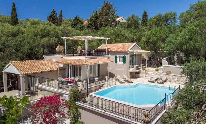 Angouletta Villa is a stunning three-bedroom contemporary Paxos villa offering the perfect blend of modern comfort and tranquility. Set just 1.4 kilometers from charming Loggos village, this stylish retreat features a private swimming pool, expansive terraces with breathtaking sea views, and an additional studio for extra guests. With its prime hillside location overlooking endless olive groves and the azure Ionian Sea, Angouletta provides an idyllic sanctuary for discerning travelers.