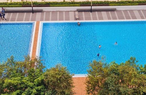 No, this Anjung Apartment 3BR 1 does not have a swimming pool. Check the Facility Overview section for details about the pool and other available facilities.