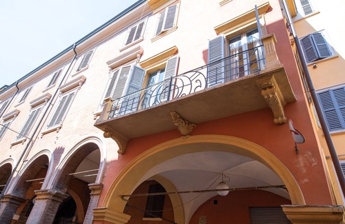 Through a private gallery, protected by a security gate, you will enter the entrance with a spacious desk, PC area. The corridor leads you to the double bedroom, the bathroom, the study. Finally, you will reach the sumptuous hall of over 40 m2, dominated by original 18th century frescoes and a period Venetian beaten floor. The living room houses a technological kitchen equipped with induction hob, dishwasher, microwave oven and traditional oven, a large sofa, a suggestive period marble fireplace and an elegant balcony overlooking Via Emilia. In the cellar on the ground floor you will find several bicycles at your disposal.