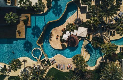 Overlooking the Port of Paphos, this luxurious 5-star resort features tropical landscaped gardens surrounding a large pool with swim-in caves. The Annabelle offers a fine dining and access to the beautiful Mediterranean Sea. The rooms at the Annabelle Hotel include elegant marble features, and deluxe amenities including bathrobes and slippers. All rooms come with mini-bars, satellite TVs, and free Wi-Fi. Guests of the Annabelle are greeted with fresh juice and a refreshing cold towel upon arrival. Guests can stroll through the landscaped gardens and admire the waterfalls. For a relaxing experience, guests can enjoy Annabelle's roof top indoor pool and the adults only Ouranos Well-being Spa offering a sauna, steam room, gym, and a variety of spa treatments. Certified Cypriot buffet breakfast is served each morning in the Fontana Restaurant. The on-site Mediterraneo Restaurant serves international cuisine in a charming setting with views of the sea. The Amorosa Restaurant is the hotels Fine Dining restaurant perfect for a romantic meal and the beautifully located Roof top Ouranos Lounge & Bar serves multi-ethnic flavors and specially designed platters, and unique individual tapas-style dishes. The Annabelle is surrounded by the local shops, tavernas and bars of Paphos. Guests can enjoy sightseeing in the town, or a number of water sports and activities in the area. The Paphos Airport is 9.9 mi away. Free parking is available. Guests can enjoy Asian-Mediterranean flavors paired with beach views at Antasia beach bar and restaurant, located within a short walking distance from Annabelle.