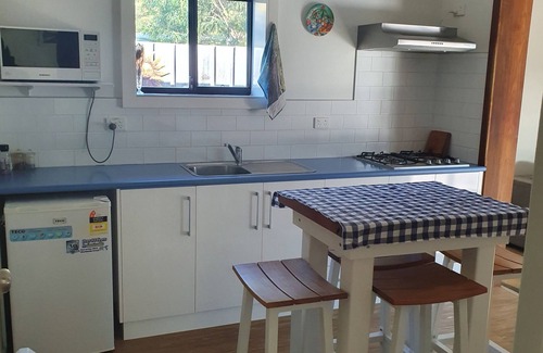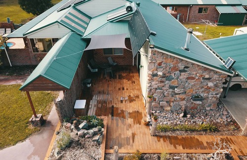 We have a 2 Bedroom house attached to existing house with separate entrance for a 2 car carport. Lounge, Kitchen/Dining, Bathroom, Toilet, Laundry with an outside decking/BBQ. 2 Queen Bedrooms also 2 single foldout beds. Can sleep 6. Reverse Cycle Airconditioner/Tile wood fire in winter months only. Carport for 2 cars. Very secure parking. Enough room for trailers etc. Our property is situated on 5 acres with 2 lakes also have a fenced off area for your dogs when you visit the National Park. If you need more accommodation, we have other properties on the property.