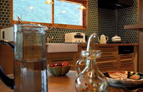 Two photographers recreated a 110yearold thatched old folk house in a small village in Miyama Kyoto It is an official inn with a business license in accordance with the inn business law The roof is covered with tiles but if you go up to the attic you can still see the fine thatched roof Without changing the prototype of the old folk house the interior was refurbished to fit the modern lifestyle with air conditioner wood burning stove and wooden bath with Japanese garden view / A luxurious mountain hut for adults