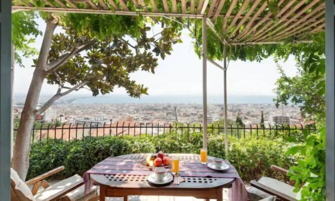 An elegant 1-bedroom apartment offering breathtaking, 180 degree panoramic views of the city of Thessaloniki and Bay across to Mt Olympus, from its shaded, private terrace with garden. The tastefully furnished and decorated apartment is fully equipped to offer a most comfortable stay to a maximum of 4 guests. Its privileged position combines the traditional feel of the old city with easy access to the city centre (15-20mins walk).Our accommodation is just a 10-minute walk from the nearest bus stop. From there, you can take bus line 22, which goes directly to Aristotelous Square, the heart of Thessaloniki’s city center.