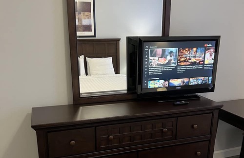 Spacious 2 bedrooms with 2 full baths and Roku TV! Everything you need to live, just show up and unpack! Very clean and great location! Limited time offer on this location! Try us out! Fully equipped kitchen with cookware.