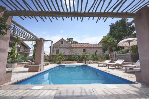 A recently renovated villa, Antikes Weingut OAZA offers accommodations in Vrbanj. This property offers access to a terrace, free private parking, and free Wifi. The villa has an outdoor fireplace and a hot tub. The air-conditioned villa consists of 5 bedrooms, a living room, a fully equipped kitchen with a dishwasher and a coffee machine, and 4 bathrooms with a hot tub and a hair dryer. Guests can take in the views of the sea from the balcony, which also has outdoor furniture. There's also a seating area and a fireplace. A mini-market is available at the villa. Yoga classes and fitness classes are arranged at the fitness room in house. Guests can enjoy the outdoor swimming pool and garden at the villa. St. Stephen's Cathedral in Hvar is 16 miles from Antikes Weingut OAZA, while Hvar's Theatre and Arsenal is 16 miles from the property. Split Airport is 45 miles away.