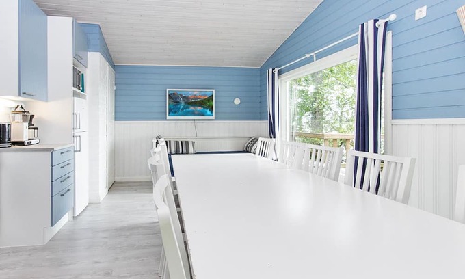 Tässä kohteessa voit nauttia lomastasi merellisessä ympäristössä. Hyvin varusteltu mökki, hoidetut ja laajat nurmikkoalueet sekä hyvä, merellinen sijainti muodostavat hyvän yhdistelmän loman onnistumisen kannalta. Saareen ja mökkikylään pääsee autolla perille asti, pysäköintipaikka löytyy mökin vierestä.